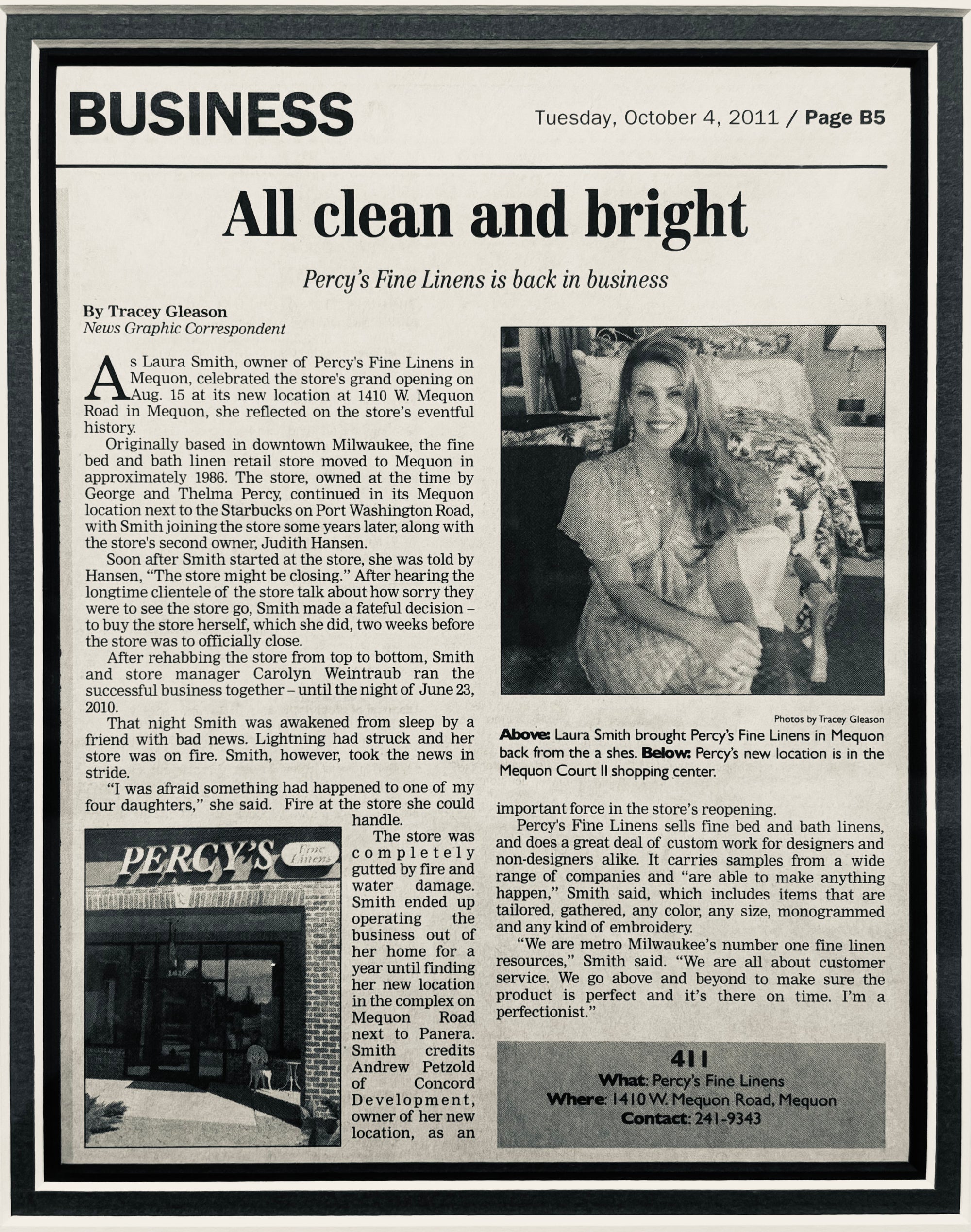 Building upon Percy's legacy as a family-owned and operated business, Laura's daughter Krystle joined the Percy's team in 2022 to help carry Percy's forward into the next generation. With a foundation of deep love, trust and shared passion, they work passionately as a mother and daughter team to uphold Percy's legacy as Milwaukee-area's exclusive fine linen boutique.